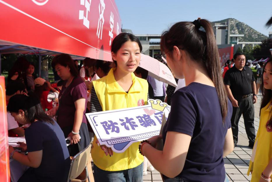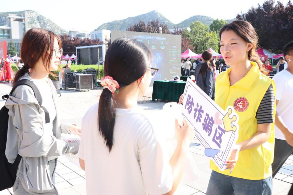 本届迎新活动将金融反诈宣传列为重点内容之一。现场专门设置“新生防诈骗小贴士”展示区,发放金融防诈宣传单,志愿者结合内容现场讲解。在反诈讲解活动中通过剖析典型案例,面对面帮新生认清金融安全风险,切实筑牢防诈思想防线。迎新志愿者也在报到场地发放反诈宣传单,并在报到时反复叮嘱新生购物时提高警惕、避免受骗。