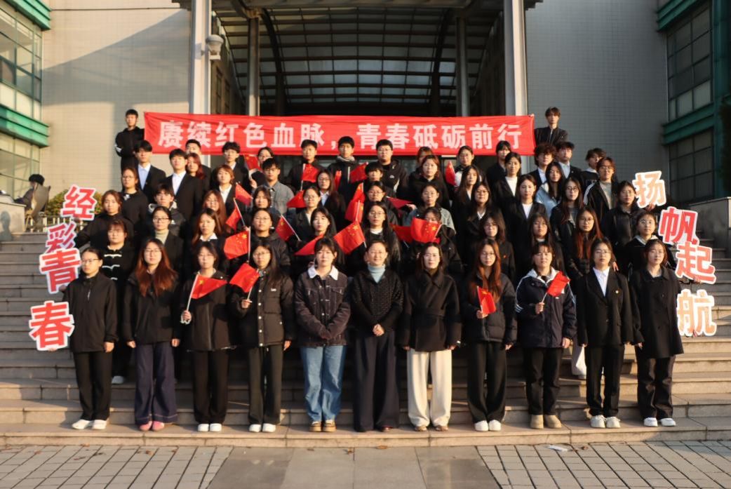 为弘扬爱国主义精神,引导广大青年学子坚定理想信念,厚植家国情怀,11月3日,经济学院在巾帼广场举行“赓续精神血脉,筑梦崭新征程”主题升旗仪式。学校学生工作处刘圆圆、经济学院党委副书记赵晓琳、分团委书记戴晓艺,以及团员学生代表、2025级学生代表共同参加。