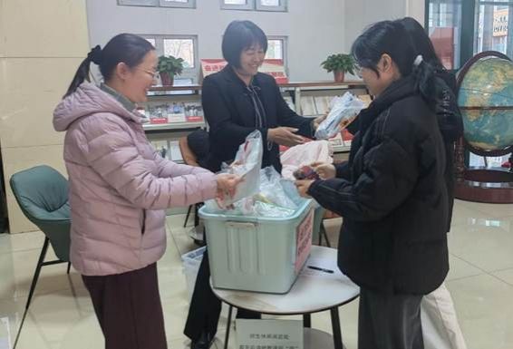 根据考研学子的实际需求,学院准备了考研礼包,内含签字笔、涂卡笔、直尺、橡皮等考试文具和暖身贴。活动现场,齐振花和赵晓琳为近300名考研学子分发考研礼包,并叮嘱大家注意保暖防寒、规律作息,保持良好的身心状态迎接研究生考试。