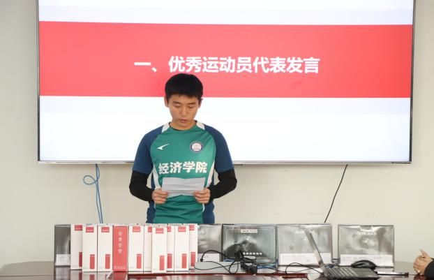 随着经验分享环节圆满结束,齐振花书记作了总结发言。她首先对获奖队伍取得的优异成绩表示充分肯定,并围绕“拼搏、协作、坚持”三个方面分享了核心感悟:一是要有奋勇争先、“敢赢”的志气;二是要有协同共进、“共赢”的格局;三是要有自律坚持、“常赢”的底气。她寄语全院学子,希望大家将体育精神融入日常学习与生活,在学业与运动中寻求平衡,以强健的体魄和饱满的精神状态迎接未来的挑战。会议最后,学院为获奖队伍颁发了奖品,表彰他们的拼搏付出和为院争光的精神,并激励大家在今后的赛事中再接再厉、再创佳绩。